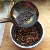 7. 把油烧热,爆香花椒