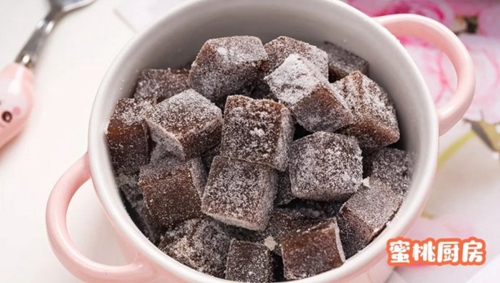 做法图解5:5.脱膜切成大小相近的方块,粘上白糖即可