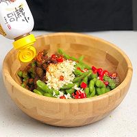 做法图解13:毛豆中的卵磷脂等有助于改善大脑的记忆和智力水平,还含有丰富的食物纤维,不仅能改善便秘,还有利于血压和胆固醇的降低,其营养丰富均衡,对女性保持苗条身材作用显著。