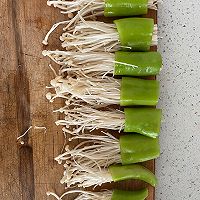 做法图解2:切成段,祛籽后,拔金针菇塞进去