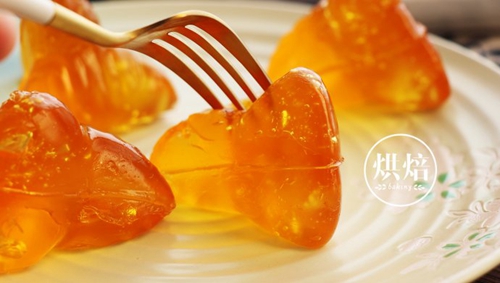 Q:为啥不包馅进去?A:因为包了感觉会丑,这个琥珀金黄色似乎和一切馅料的颜色互斥,所以为了颜值我们没有包,当然你要是在家自己做,对拍照效果没有要求的话,也可以包,不过如果要包馅儿,最好用粽叶,因为用粽子模具馅料可能会移位,不在粽子中心, ̄□ ̄||~Q:一定要用粽子模具吗?家里没有。A:那就用粽叶吧,就是没有模具好看而已。Q:就只用糖浆和水晶粉,不会太甜吗?A:甜!但可以接受,喜欢甜的应该还挺喜欢的。