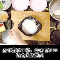 做法图解2:把洗净的金针菇和粉丝分别码进砂锅里