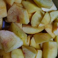做法图解3:3.糖水煮开后尝一下,不甜的话再加一些冰糖。4.加入黄桃,根据黄桃块头,小块煮5分钟就可以,大块比如一分为二要煮10分钟