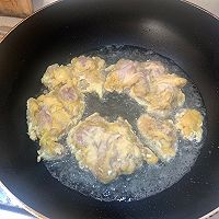 做法图解8:锅中倒油烧热下鸡块,小火炸4分钟,中途记得翻面儿