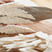 做法图解1:1.荔浦芋头去皮后切丝备用*家里有擦丝器的可以用擦丝器擦成丝哦干香菇提前用清水泡软,洗净挤干水分,切成小粒