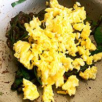 放入炒好的鸡蛋时,翻炒几下就可以出锅,时间不要长,不然鸡蛋老了口感会发硬滴