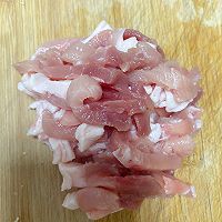 做法图解2:后腿肉切片(用五花肉最好),放一边备用