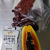 木瓜半个,纯牛奶1袋,红枣6个,枸杞10克,冰糖10克