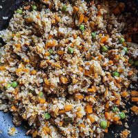 做法图解4:加香菇沫豌豆胡萝卜沫炒香加入二勺东古一品鲜酱油入味