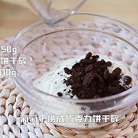 做法图解3:碗中倒入50g奶粉、适量巧克力饼干碎和10g酸奶,搅拌均匀