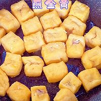 做法图解9:热锅凉油煎豆腐泡,先煎肉馅一面