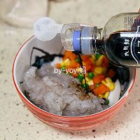 虾仁250克,杂菜100克,轻盐酱油3勺