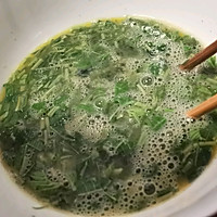 做法图解2:这一步好多人省略,我建议不要省,最好是给香椿焯个水,我们把香椿芽放在开水里,焯烫30秒至1分钟,就可以去除2/3以上的亚硝酸盐和草酸,吃起来更安全,口感也好多了,还能让香椿芽变成漂亮的绿色。