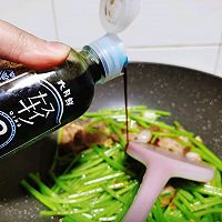 做法图解8:放入焯好的芦蒿段翻炒均匀