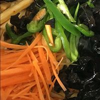 做法图解1:杏鲍菇撕条,木耳胡萝卜尖椒切丝