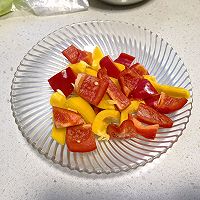 做法图解2:取出彩椒切成块,喜欢吃土豆胡萝卜也可以加点,因为疫情,家里只有这个了。