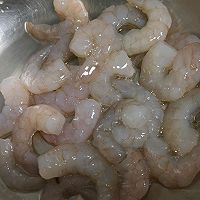 做法图解2:虾仁洗净抽线,控干水分,微微用力挤压出多余的水分