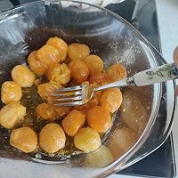 做法图解10:鸭蛋黄可以提前在微波炉中转熟,然后压成泥