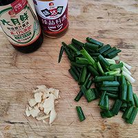 蒜薹250克,猪肉200克,葱1根,姜一块,六月鲜酱油1勺,盐半勺,鸡精1勺