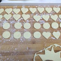 做法图解7:醒发后,直接擀成0.5厘米的厚度,用喜欢的模具,压出形状。我的是爱心模具