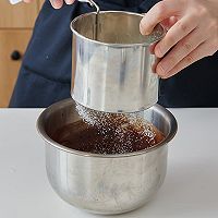 做法图解3:黑巧克力和黄油放入盆中,隔热水融化,然后加入步骤二搅拌均匀