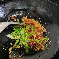 做法图解4:起锅烧油,放入大蒜沫,姜沫,豆瓣酱,青椒丝炒香