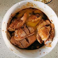 鸡翅10个,大虾3只,蒜2个,青红辣椒适量,葱1根,六月鲜蒸鱼豉油1勺,味达美臻品耗油1勺,味达美臻品料酒4勺,鸡蛋1个,淀粉适量,六月鲜红烧酱油1勺,味达美初炸醇酿酱油2勺