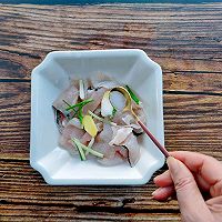 做法图解2:黑鱼片中放入生姜,葱段,加1勺盐