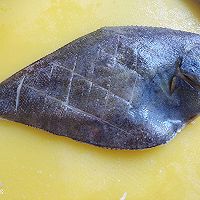 做法图解4:将偏口鱼去鳃,去内脏,去鳞,去鱼鳍洗净,打花刀备用