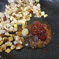做法图解12:下入笋丁,香菇丁,榨菜丁煸炒