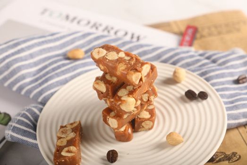 麦芽糖120克,淡奶油270克,盐12克,白糖270克,熟榛子160克,黄油210克,海藻糖浆135克