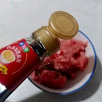 做法图解2:瘦肉剁成沫,倒入适量的味达美葱姜料酒