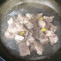 做法图解2:将牛腩冷水下锅,加入姜片、料酒,除血水,捞出备用