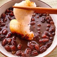 做法图解16:年糕表面香脆,里面软到可以拉丝,和着香甜的红豆汤,太温暖的味道了!