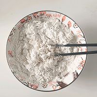 做法图解3:另取一次碗,加入20g的面粉,3g的椒盐粉,30g烧热的食用油,筷子搅拌均匀调成油酥,备用。