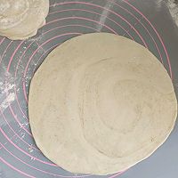 做法图解9:锅内刷一层食用油,放入擀好的面饼,小火煎2-3分钟,面饼的表面也刷一层食用油,这样饼皮就不会太干。