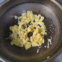 做法图解2:两勺油鸡蛋加盐搅匀滑熟,再加入午餐肉,稍微煎一下就好啦