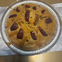 做法图解3:碗里刷一层油,把发酵好的面粉液倒入,表面放好红枣,静置15分钟,放到锅里蒸