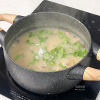 做法图解7:倒入生菜丝、少许食盐提味儿;