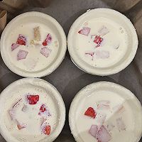 做法图解2:家里有现成的草莓和凤梨,我也切了一些放到蛋挞皮里,改善一下口味