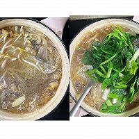 做法图解8:放入平菇、豆芽,煮一会儿,最后放菠菜,加入生抽老抽鸡精盐调味。