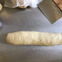 做法图解12:从一头对半切开,用刮板或者刀都行,我这个不锈钢刮板可好用了哈哈哈!注意,其中一头不要切断。