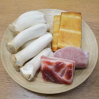 做法图解1:杏鲍菇、豆腐干洗净,猪肉以瘦肉为主,带一点肥的口感更香润