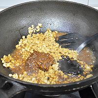 做法图解4:肉丁煸炒变色,倒入黄豆酱、甜面酱、老抽上色增香