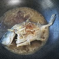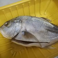 鲳鱼1条,清水1小碗,生抽1勺,蚝油半勺,太太乐鸡粉小半勺,葱1条,姜3片,油1勺