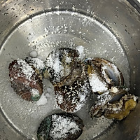 做法图解1:将鲍鱼放入50度水中,放入盐,浸泡10分钟。