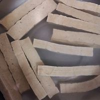 做法图解1:蔚县五香豆干,冰箱取出,开水泡!半个小时,再换一次开水,然后控水备用