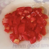做法图解3:番茄打十字花刀,用开水烫一下去皮切小块。