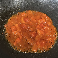 做法图解4:锅中油热放入番茄炒出汤汁。