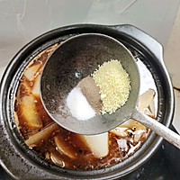 做法图解11:加入一勺盐,一勺胡椒粉,两勺鸡精调味!